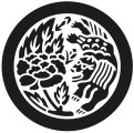牡丹 「牡丹紋は関白家である近衛家の紋章であるから、徳川時代には菊、桐、葵の紋についで権威があった。それ故使用は限られ、公家では、鷹司、難波の両家、武家には上野矢田の松平、伊達、津軽、島津、および鍋島の五氏であり、寺院では興福寺、大乗院、本願寺、総持寺、および興正寺などである」(家紋大図鑑)牡丹紋は紋帖によって少しづつ形が違う事があります。 黒地に白の紋は<上絵>の紋。掲載分は丸無しが多いですが、丸・細輪も付けられます 白地に黒の紋は<刷込み>の紋(丸付きにしている場合があります) (注) Mは「見本紋」という意味です #1 平安紋鑑の抱き牡丹、紋典のは少し違う #2 紋典の八つ葉牡丹 #3 平安紋鑑の津軽家牡丹、紋典の津軽牡丹は少し違う #4 紋典の浮線牡丹、平安紋鑑は少し違う #5 紋典 #6 平安紋鑑 #7 紋典の秋田牡丹に似ている、平安紋鑑のは違う #8 紋典(Tシャツの柄に採用しています) #9 平安紋鑑 |