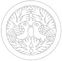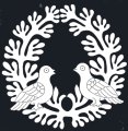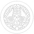 | 寓生(ほや) 「寓生とは、寄生木のことで、ケヤキ、ムクノキ、エノキなどの枝に寄生し、親木が葉を落としても、なお青々とまるい姿で冬枯れの空を色どっている。・・・・いにしえ人の感興をそそった・・・・まるい独特の模様は、一種不思議なデザインとして珍重されていた」(家紋大図鑑) 鳩との組合わせが多い。 黒地に白の紋は<上絵>の紋。掲載分は丸無しが多いですが、丸・細輪も付けられます 白地に黒の紋は<刷込み>の紋(丸付きにしている場合があります) (注) Mは「見本紋」という意味です |
