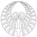 | ほなが (歯朶) 「ウラジロの別称」(広辞苑) 「歯朶(羊歯)紋は古来呼び方が一定せず、『見聞諸家紋』・・では『しだの丸』と呼び、『定紋の研究』では穂が長いので『穂長丸』が穏当といっている」(家紋大図鑑) 黒地に白の紋は<上絵>の紋。掲載分は丸無しが多いですが、丸・細輪も付けられます 白地に黒の紋は<刷込み>の紋(丸付きにしている場合があります) (注) Mは「見本紋」という意味です |