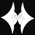 | 雁金 黒地に白の紋は<上絵>の紋。掲載分は丸無しが多いですが、丸・細輪も付けられます 白地に黒の紋は<刷込み>の紋(丸付きにしている場合があります) (注) Mは「見本紋」という意味です #1 紋典の増山雁金。紋帖では上の雁金は少し丸から離れる 平安紋監の増山雁金は上の雁金の口が閉じている #2 平安紋監では「変り雁金菱」となっている #3 紋典の紋 #4 平安紋監の紋(この紋はあまり使わない) |