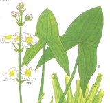 <おもだか科><おもだか属> アジアの温帯から熱帯に分布 日本各地の溝や水田にはえる多年草 葉は長さ30〜60cm、長柄がある 花は夏から秋 高さ40〜70cmの花茎に通常3輪生、下部に雌花がつく 秋に走出枝を出し塊茎をつける |