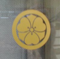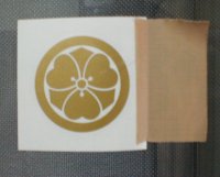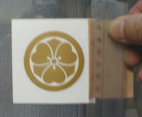 位置を決めたら、紋ぺタくんの端(余白の部分)をテープで固定します この時点で、貼り付ける場所を固定するので、しっかり位置決めをします。 |