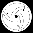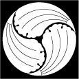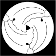 | #1<い><つ><し>は「二つ割銀杏」 #2<し>は「三つ銀杏巴」 #3<江>は「三追い重銀杏」<し>は「三重銀杏」 #4<江>は「銀杏輪に片喰」 #5<し>は「蛇の 目銀杏に片喰」 #6<典>は「對い銀杏菱」 「三つ追銀杏」「蛇の目銀杏」の形も色々あり、中には様々な紋を入れる事が可能 |