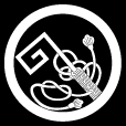 | 「丸輪」「細輪」が付いているのは「鍵」紋とのバランスの為 #1<江>は「丸に紐付鍵」 #2<典・い・つ・し>は「鍵瓢箪」 #3<つ>は「紐付一つ鎌」 |