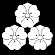 | #1<江>は「剣片喰の丸」 #2<江>は「二つ葉剣片喰」<い・つ>は「二割剣片喰」 #3<い・つ>は「四方剣片喰」 |