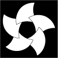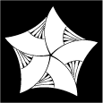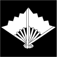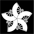 | #1<い>は「雁木扇」 #2<し>は「五つ末広車」 #3<江・い・つ・し>は「五つ重扇」 #4<典>は「三つ組半開き扇」 |