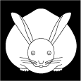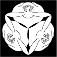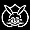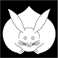 | #1<江>は「三つ後向尻合せ兎」<い・つ>は「三尻合せ兎」 #2<典>は「後向き三つ兎」 | |||||||