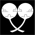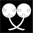 | #1<い・つ>は「三集団扇」 #2<つ>は「団扇の中に葵」<し>は「葵団扇」 | |||||||