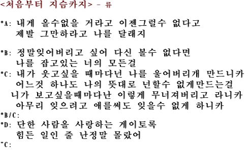 now. *C: Every time I want to smile, you let me cry. *D: I never know it is so hard to love someone. |