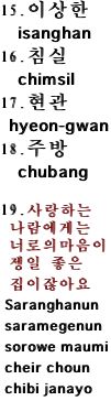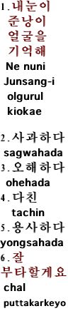 - 以下引用の台詞には意図的に適当な表題を追加した。さらにチュンサン (ミニョン)の恋の得点を独断と偏見で示した。【各得点/合計点】