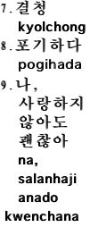 quoted speech or phrases, as well as the love-winning score of Jun-sang