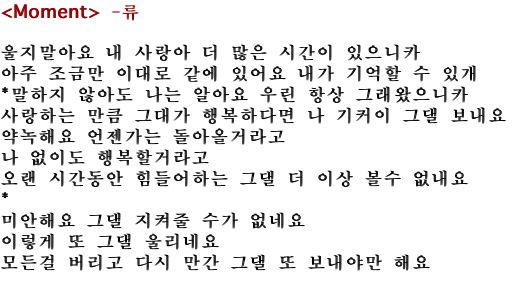♪Moment♪ - Ryu Don't cry, my Love. *Even without words, we know we will always belong to each other * I am sorry for being unable to protect you. |