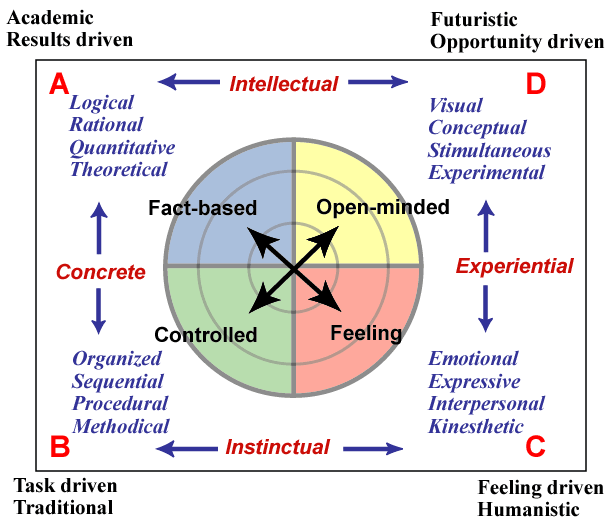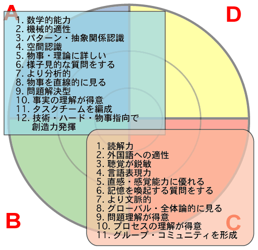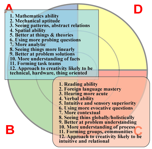 - 個人内部の多様性が相乗効果の基盤となる。論理的なアイデアと直感的指向が並列することで、相乗効果を通じて、新たなアイデアを生み出すことができる。二人以上が関与すれば、思考パターンの多様性が両者の創造的潜在能力を大きく高めることができる。