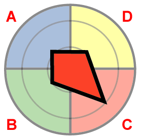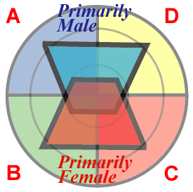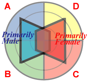 a lot more baseball caps (men) in the A quadrant and a lot more