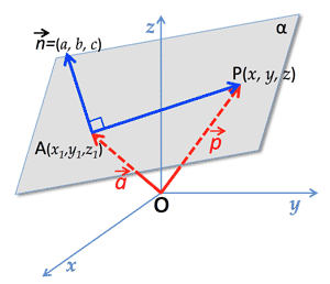 15. 平面の方程式:点Aを通り,$\overrightarrow{n}$ に垂直な面 ![]() |