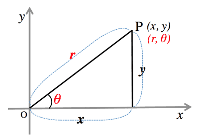- Polar coordinates: $x=r\cos\theta,\; y=r\sin\theta$