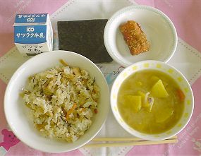 今日はひな祭り。ちらし寿司でお祝いです。海苔に巻いて食べました。