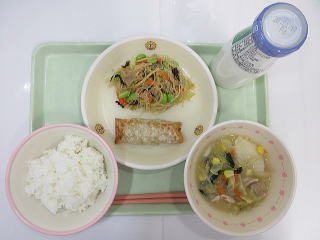 ![]() ごはん ぼうぎょうざ チャプチェ みそワンタンスープ ぎゅうにゅう |