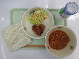 ![]() ごはん かんこくふうにくそぼろ チョレギふうサラダ ちゅうかふうコーンスープ ぎゅうにゅう |