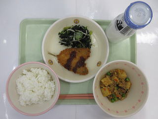 ![]() ごはん あじフライ のりあえ なまあげのそぼろに ぎゅうにゅう |