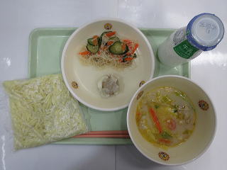 ![]() チャンポンメン(こぶくろちゅうかめん チャンポンメンスープ) エスニックはるさめサラダ ポークしゅうまい ぎゅうにゅう |