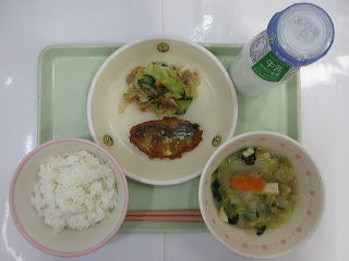 ![]() ごはん とんじる さばのごまだれやき ツナサラダ ぎゅうにゅう |
