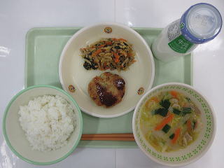 ![]() ご飯 さつま汁 豆腐ハンバーグのあんかけ カレーきんぴら 牛乳 |