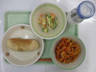 ![]() ミニきな粉揚げパン ツナとキャベツのコールスロー トマトペンネ 牛乳 |