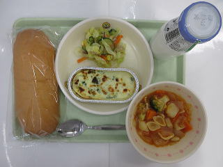 ![]() はちみつパン ミネストローネ なのはなグラタン ベーコンサラダ ぎゅうにゅう |