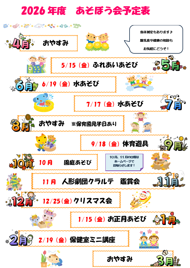 暴風警報や特別警報発令時はあそぼう会は中止です。
