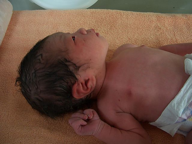 産声を上げる。胸でだっこすると本能的におっぱいを
