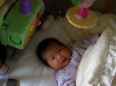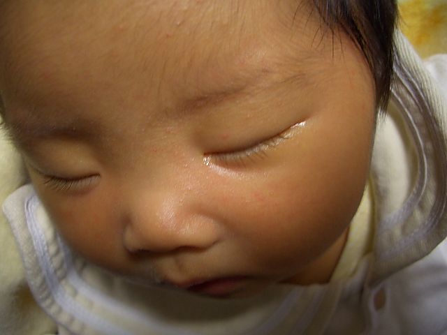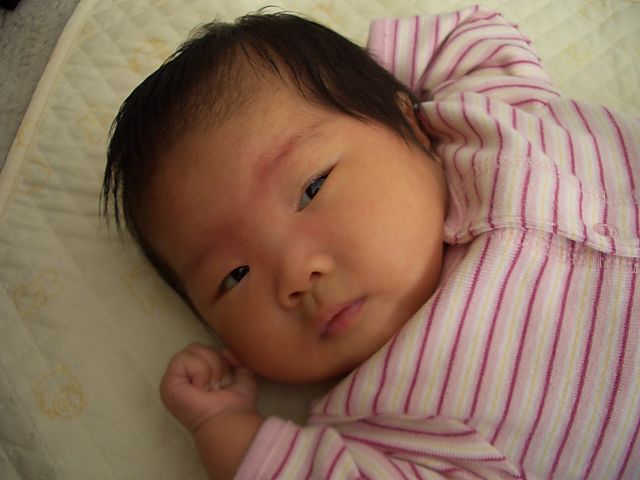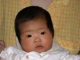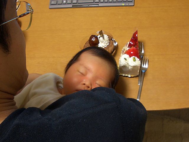 今日は一ヶ月検診です。 なんと体重は3,730gに増えていました。(1.5kg増) 発育順調!文句なし! お祝いにケーキをたべました。 |