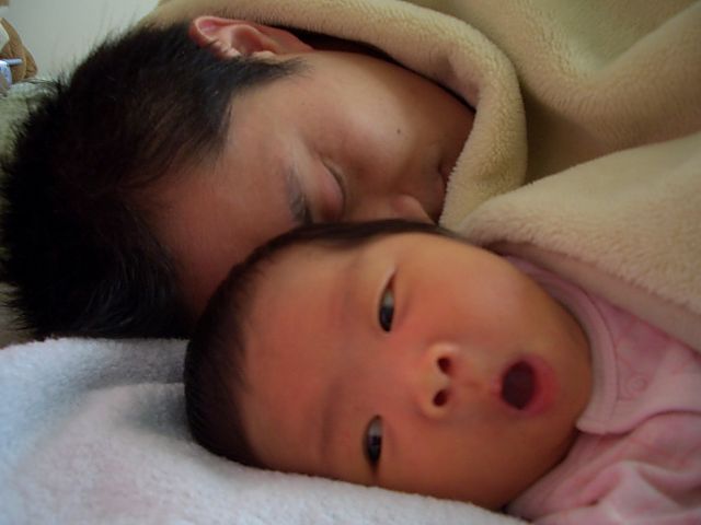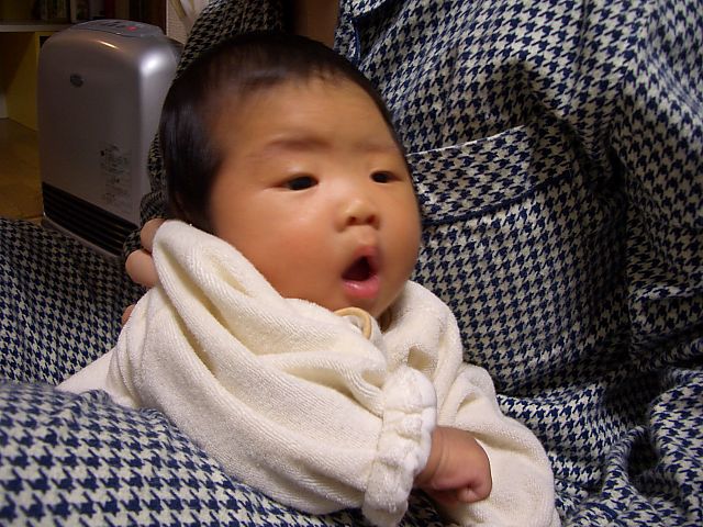 最近仕事がいそがしいパパ。 久しぶりに彼女をお風呂に入れてもらいました。 気持ちよさそうだね。 順調に母乳がでているので、この1週間、ミルクは 1日1回にしています。母乳は消化が良いのですぐに おっぱいをほしがります。 おかげで、肩がパンパンに張っています。 |