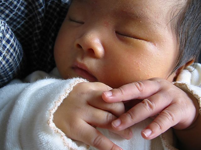 今日の彼女はなかなか寝てくれません。 11時から寝かしつけて、4時にやっと寝てくれました。 この5時間、ずーっとだっこしていたので腕がだるいです。 そうそう、両手を合わせるしぐさをするようになりました。 |