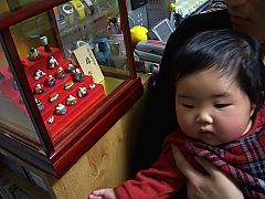 彼女をころがして、両手を引っぱりあげると 両膝をまげて、くるんと起き上がろうとします。 はやく、おっ気できるようになるといいね。 これは、豆雛です。佐賀から頂ました。 社宅は狭いので大きな雛人形がおけません。 おじちゃんが以前に買ったものとのことですが すごい人がつくったりっぱな雛人形です。 |
