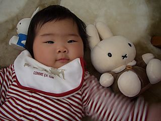 もう2月です。 9月に仕事復帰する私が、彼女とこうやって 一緒にいられるのもあと半年。 さみしいなぁ、たった半年しかないんだなぁ。 そうそう、大阪の時の学生時代の友人たちから お祝いがとどきました。 ちょっと見えにくいけど、彼女の足型の入りの フォトスタンド。みんなありがと♪ |