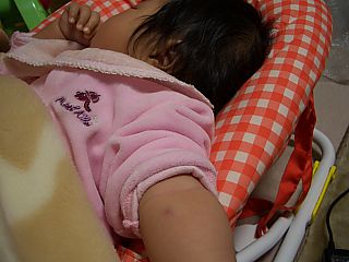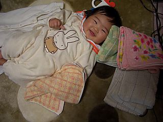 今日はよくお昼寝をしてくれました。 おかげで、家事がはかどったよ。 うんちがでないから、佐賀のおじーちゃんに 呪文を唱えてもらいました。 「だんだんうんちがしたくなぁ〜る」 で、本当にでちゃいました。じーじはすごい! |
