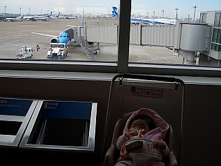 今日から、能登に里帰り。 後ろにみえているのが能登行きの小さな飛行機。 |
