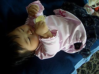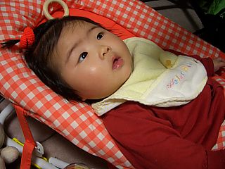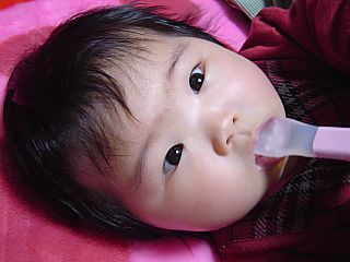 おしゃぶりの練習をしています。 久しぶりのわりには、上手にすえています。 いつも思うのですが、おしゃぶりの練習の後は すごいよだれです。 |